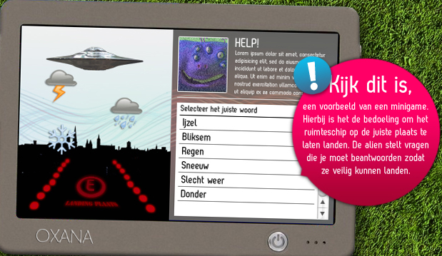 Een toonaangevende Nederlandse ontwikkelaar van educatieve games vroeg me een scenario te schrijven. Het beoogde computerspel was gericht op kinderen met een taalachterstand, uit groep 6, 7 en 8. Ik schreef een verhaal over een Nederlandse voetbalclub die het moest opnemen tegen een buitenaards team. Spelenderwijs leerden de kinderen woorden bij die vooraf door onderwijsexperts waren geselecteerd. Hier is een deel ervan te vinden.